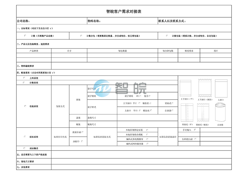 第一步:跟業(yè)務(wù)經(jīng)理取得聯(lián)系,明確需要計數(shù)的物料,并填寫《客戶需求表》,包含了物料信息,包裝要求等等